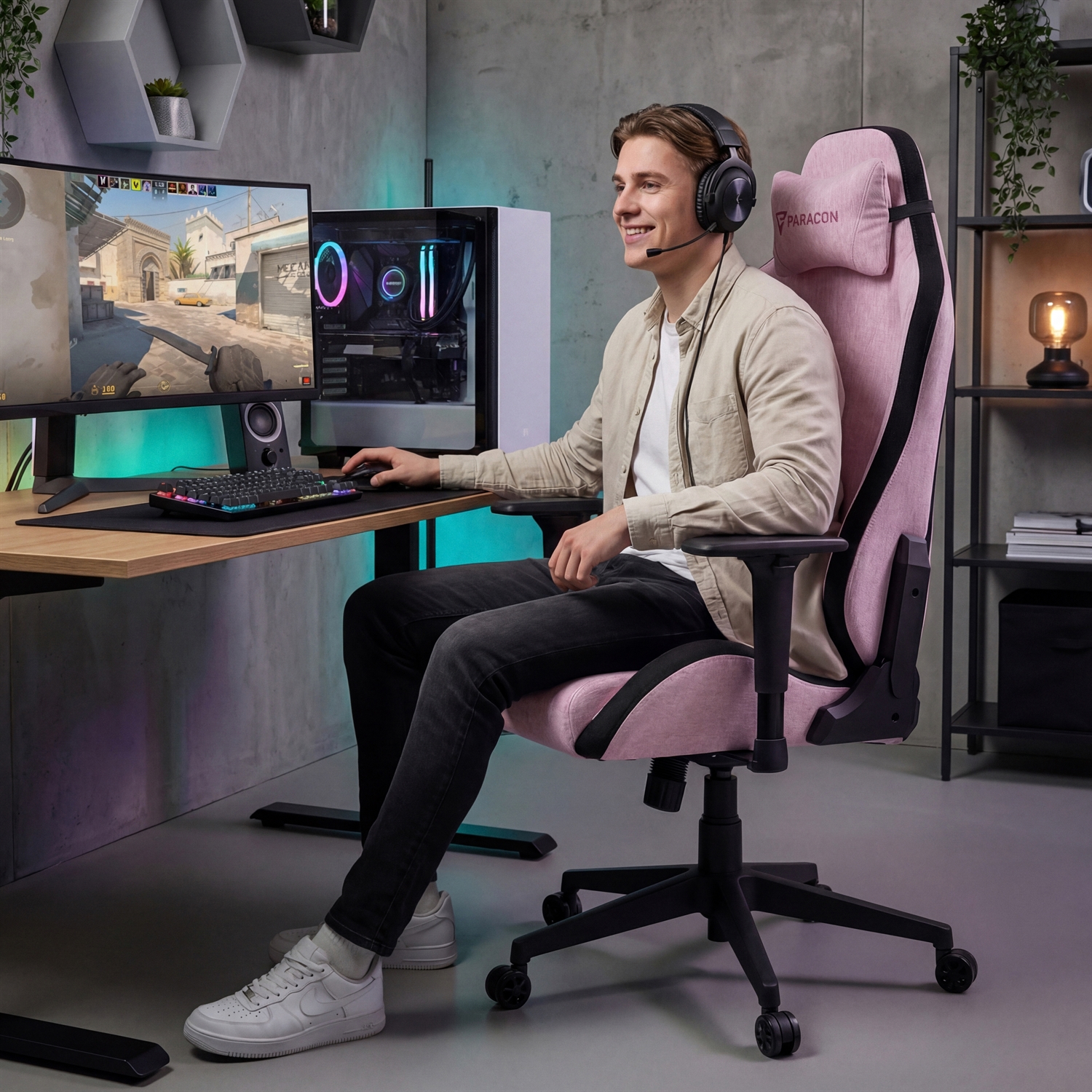 Fotel gamingowy Paracon GLITCH - Tkanina - Różowy