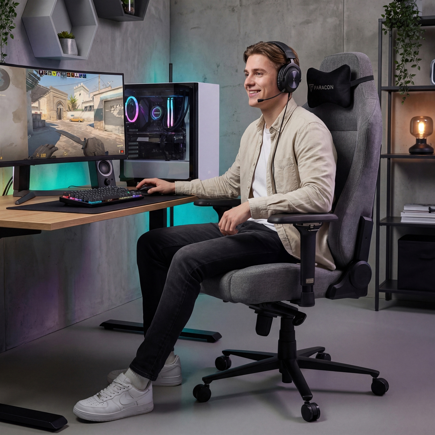 Fotel gamingowy Paracon SUPREME - Tkanina - Szary
